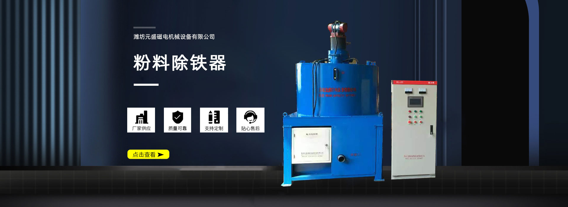濰坊元盛磁電機械設備有限公司致力于金屬探測、磁選、除鐵、微機計量、微機控制技術的研究和開發,并已形成系列產品。主要產品有:各種型號的金屬探測儀, 電振機,電磁除鐵器、永磁除鐵器,磁選機,輸送機,微機計量設備,水泥微機配料、預加水成球系統等。產品廣泛用于建材、化工、冶金、礦山、玻璃、陶瓷、糧食、食品等行業,…… “質量良好、信譽良好、用戶良好”是本廠的經營宗旨,我廠竭誠歡迎各地用戶蒞臨考察,洽談業務。
